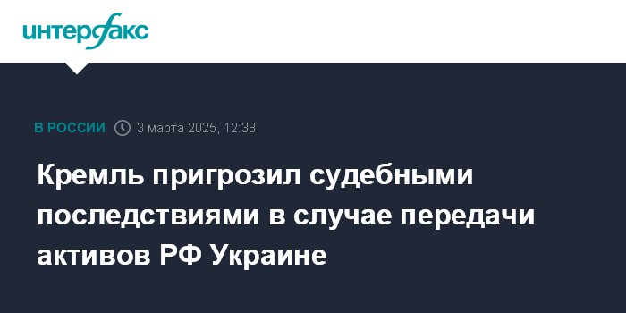 Кремль пригрозил судебными последствиями в случае передачи активов РФ Украине