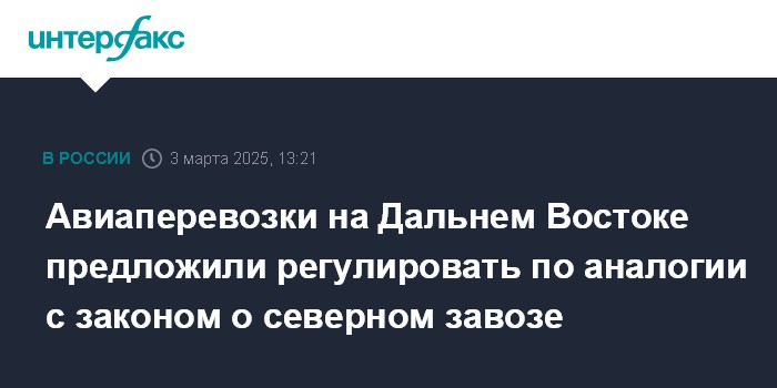 Авиаперевозки на Дальнем Востоке предложили регулировать по аналогии с законом о северном завозе