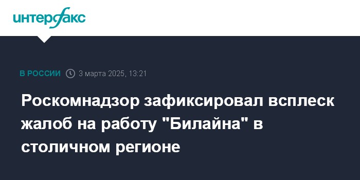 Москва. 3 марта. INTERFAX.RU - Специалисты Центра мониторинга и управления сетью связи общего пользования (ЦМУ ССОП) Роскомнадзора зафиксировали всплеск жалоб абонентов ПАО "Вымпелком" (бренд "Билайн") в Москве и Московской области; оператор решает проблему, сообщила "Интерфаксу" пресс-служба ведомства.