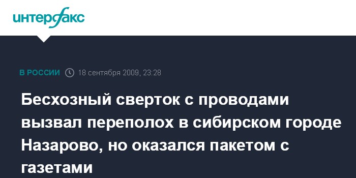 Бесхозный сверток с проводами вызвал переполох в сибирском городе Назарово, но оказался пакетом с газетами