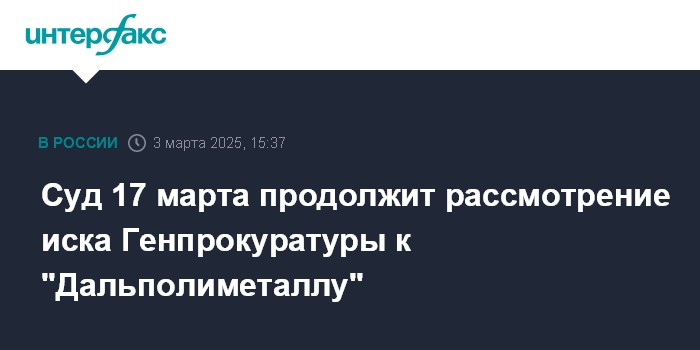 Суд 17 марта продолжит рассмотрение иска Генпрокуратуры к "Дальполиметаллу"