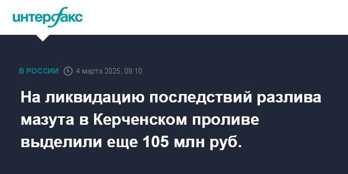 На ликвидацию последствий разлива мазута в Керченском проливе выделили еще 105 млн руб.