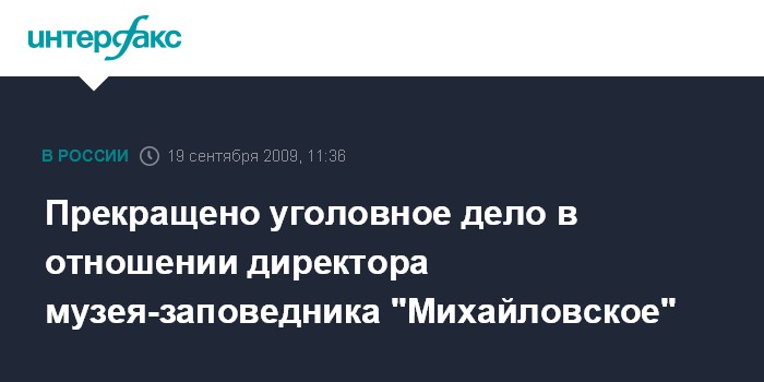 Москва. 19 сентября. INTERFAX.RU - Уголовное дело в отношении директора музея-заповедника "Михайловское" Георгия Василевича прекращено, сообщил источник в правоохранительных органах.
