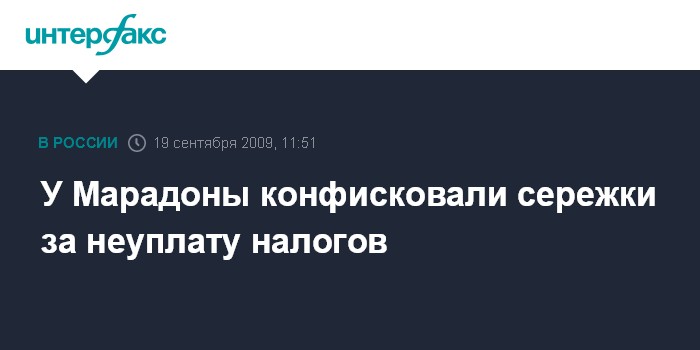 Москва. 19 сентября. INTERFAX.RU - Итальянская полиция конфисковала у наставника аргентинской сборной по футболу Диего Марадоны сережки в счет налоговой задолженности, которую он не погасил еще с тех времен, когда играл за клуб "Наполи", передает британская телерадиокорпорация ВВС.