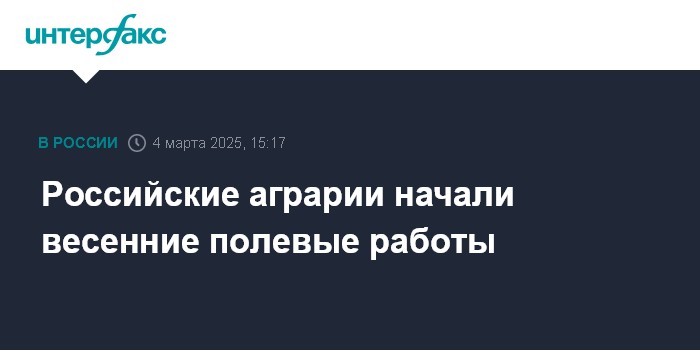 Москва. 4 марта. INTERFAX.RU - Российские аграрии приступили к весенним полевым работам, сообщает Минсельхоз по итогам рабочей поездки главы ведомства Оксаны Лут в Мордовию.