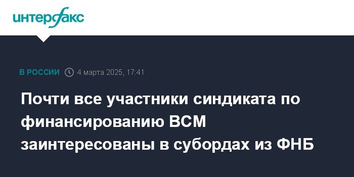Почти все участники синдиката по финансированию ВСМ заинтересованы в субордах из ФНБ
