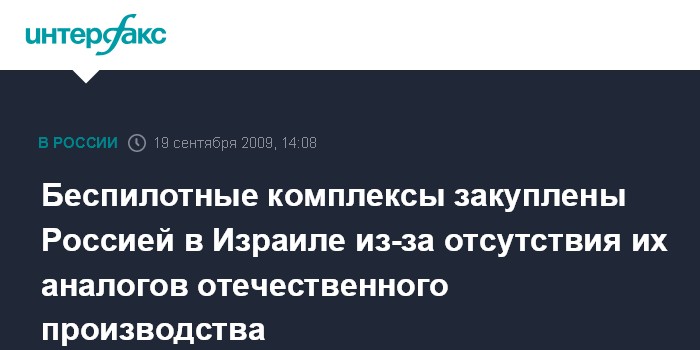 Беспилотные комплексы закуплены Россией в Израиле из-за отсутствия их аналогов отечественного производства