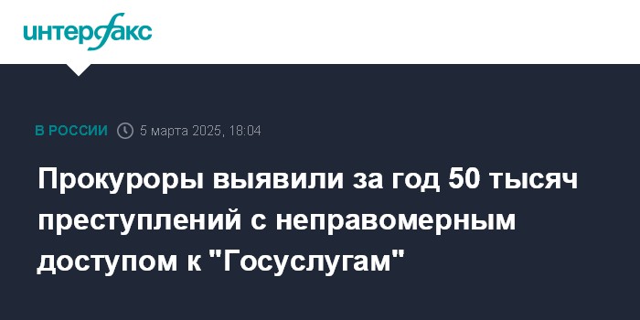 Прокуроры выявили за год 50 тысяч преступлений с неправомерным доступом к "Госуслугам"