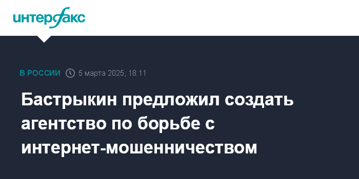 Москва. 5 марта. INTERFAX.RU - Председатель Следственного комитета Александр Бастрыкин предложил создать Агентство по противодействию телефонному интернет-мошенничеству и другим киберпреступлениям. Он высказал эту идею на совещании президента с правительством.