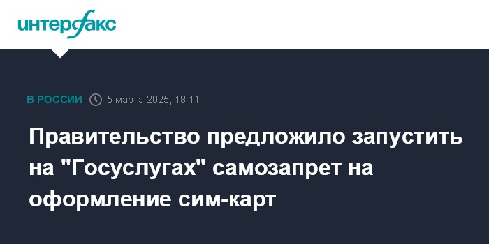 "Мы предлагаем ввести на портале госуслуг сервис с возможностью самозапрета оформления сим-карт вообще на себя с тем, чтобы, даже если мошенники и добудут персональные данные (человека - ИФ), у них не было бы возможности оформить (на него - ИФ) номер телефона и использовать его для мошеннических действий", - добавил вице-премьер.