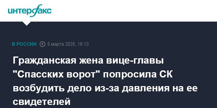 Гражданская жена вице-главы "Спасских ворот" попросила СК возбудить дело из-за давления на ее свидетелей