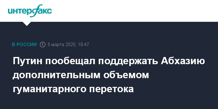 Путин пообещал поддержать Абхазию дополнительным объемом гуманитарного перетока