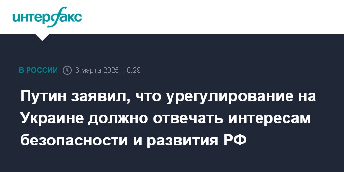 Путин заявил, что урегулирование на Украине должно отвечать интересам безопасности и развития РФ