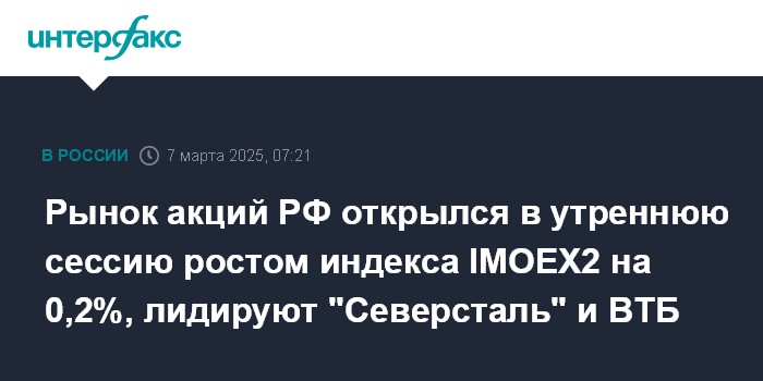 Рынок акций РФ открылся в утреннюю сессию ростом индекса IMOEX2 на 0,2%, лидируют "Северсталь" и ВТБ