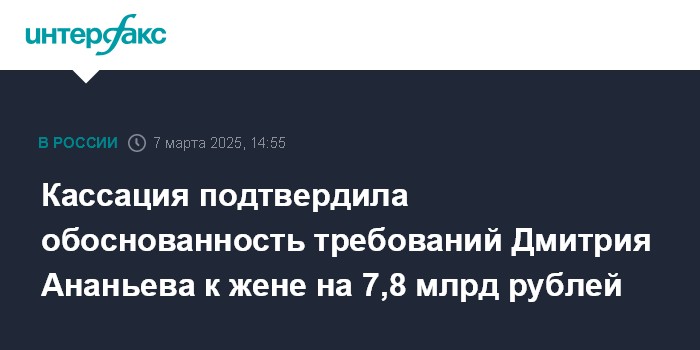Кассация подтвердила обоснованность требований Дмитрия Ананьева к жене на 7,8 млрд рублей