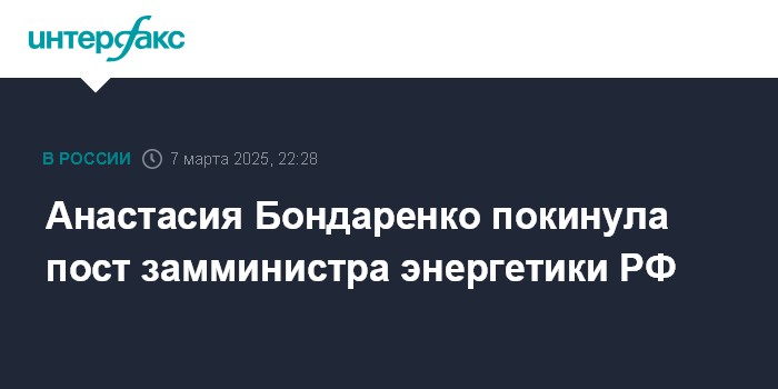 Анастасия Бондаренко покинула пост замминистра энергетики РФ