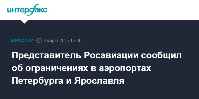 Представитель Росавиации сообщил об ограничениях в аэропортах Петербурга и Ярославля