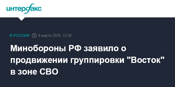 Минобороны РФ заявило о продвижении группировки "Восток" в зоне СВО