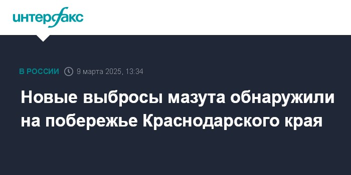 Москва. 9 марта. INTERFAX.RU - Новые выбросы мазута зафиксированы на нескольких участках побережья Краснодарского края в воскресенье, сообщил региональный оперштаб в своем телеграм-канале.