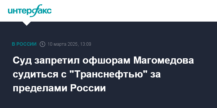 Высокий суд Англии и Уэльса в январе 2025 года отклонил иск Магомедова к "Транснефти" на $5 млрд из-за российской подсудности и срока давности.