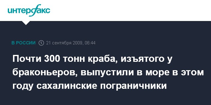 Южно-Сахалинск. 21 сентября. ИНТЕРФАКС-ДАЛЬНИЙ ВОСТОК - Сахалинские пограничники в субботу выпустили в море более 2,5 тонн краба стригуна-опилио.