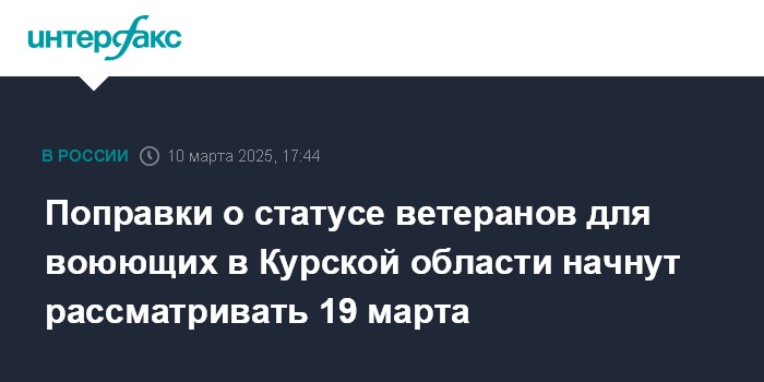 Поправки о статусе ветеранов для воюющих в Курской области начнут рассматривать 19 марта