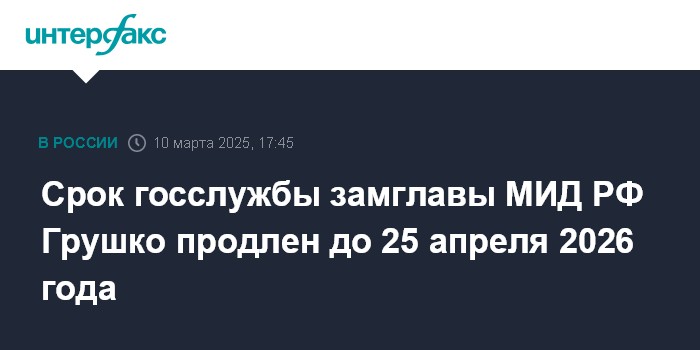 Срок госслужбы замглавы МИД РФ Грушко продлен до 25 апреля 2026 года