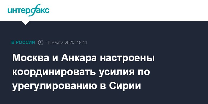 Москва. 10 марта. INTERFAX.RU - Россия и Турция подтвердили настрой на координацию усилий для содействия урегулированию сирийского кризиса.