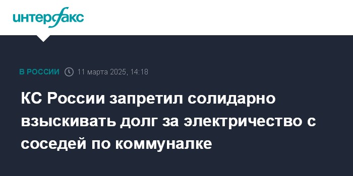 КС России запретил солидарно взыскивать долг за электричество с соседей по коммуналке