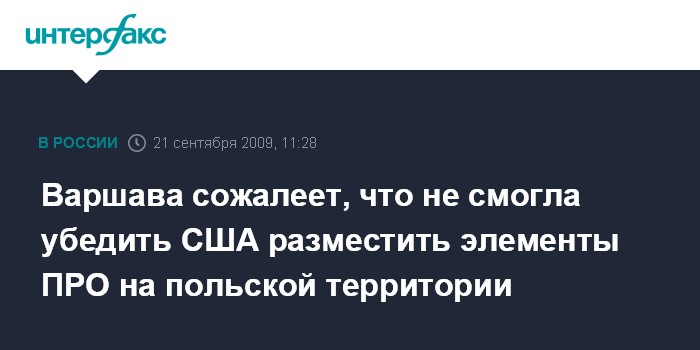 Москва. 21 сентября. INTERFAX.RU - Решение президента Барака Обамы о перегруппировке сил ПРО в Европе вызвало глубокое огорчение в официальной Польше. По данным корреспондента "Интерфакса", польское посольство в Вашингтоне получило из Варшавы выговор за провал усилий по размещению так называемого американского "щита" на польской территории.