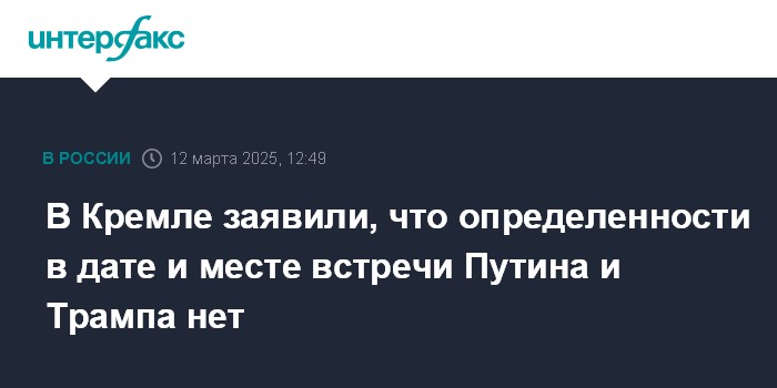 Москва. 12 марта. INTERFAX.RU - Определенности относительно даты и места возможной встречи президентов России и США Владимира Путина и Дональда Трампа пока по-прежнему нет, заявили в Кремле.