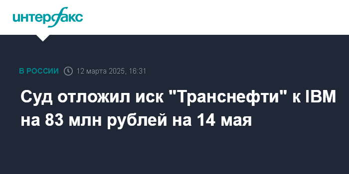 Суд отложил иск "Транснефти" к IBM на 83 млн рублей на 14 мая