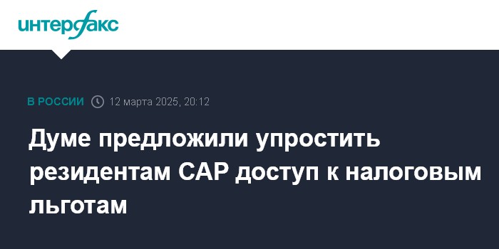 Думе предложили упростить резидентам САР доступ к налоговым льготам