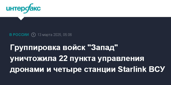 Группировка войск "Запад" уничтожила 22 пункта управления дронами и четыре станции Starlink ВСУ