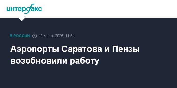 Москва. 13 марта. INTERFAX.RU - Вводившиеся утром ограничения на работу аэропортов Саратова и Пензы сняты, сообщил представитель Росавиации Артем Кореняко в своем телеграм-канале в четверг.