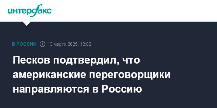 Песков подтвердил, что американские переговорщики направляются в Россию
