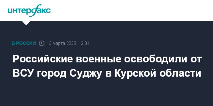 Российские военные освободили от ВСУ город Суджу в Курской области