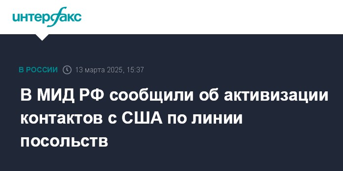 Москва. 13 марта. INTERFAX.RU - Россия и США активизировали контакты по линии посольств, сообщила официальный представитель МИД РФ Мария Захарова.