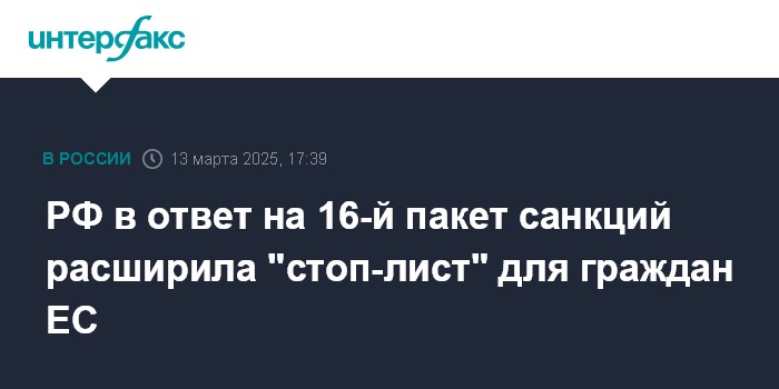 РФ в ответ на 16-й пакет санкций расширила "стоп-лист" для граждан ЕС