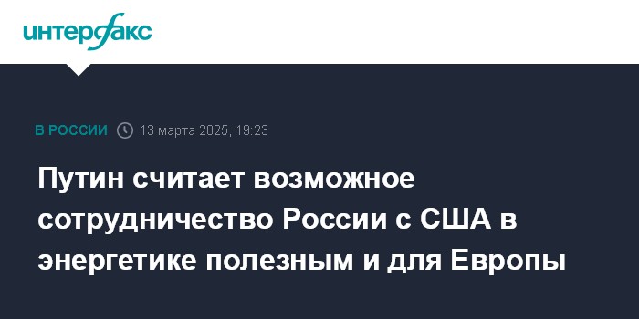 Путин считает возможное сотрудничество России с США в энергетике полезным и для Европы