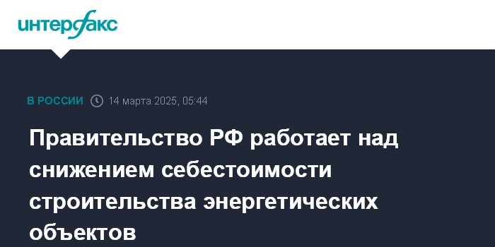 Правительство РФ работает над снижением себестоимости строительства энергетических объектов