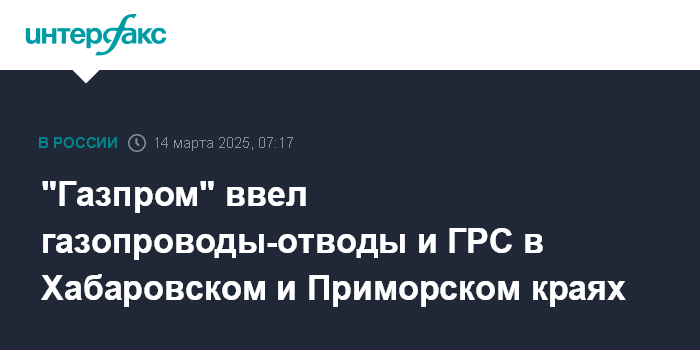 "Газпром" ввел газопроводы-отводы и ГРС в Хабаровском и Приморском краях