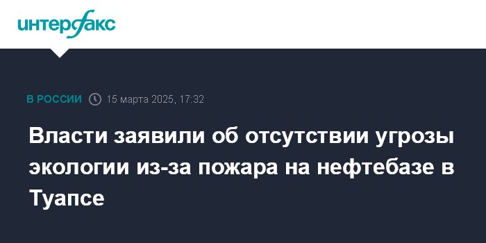 Москва. 15 марта. INTERFAX.RU - Глава Туапсинского муниципального округа Краснодарского края Сергей Бойко сообщил, что угрозы разлива нефтепродуктов на месте пожара на нефтекомплексе в Туапсе нет.