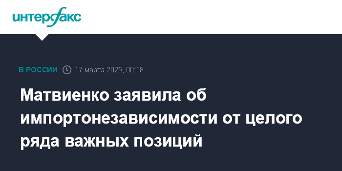 Матвиенко заявила об импортонезависимости от целого ряда важных позиций
