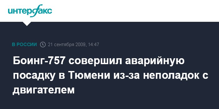 Тюмень. 21 сентября. ИНТЕРФАКС-УРАЛ - В тюменском аэропорту "Рощино" 20 сентября совершил аварийную посадку пассажирский Боинг-757 ООО "Северный ветер", выполнявший рейс Иркутск-Анталья.