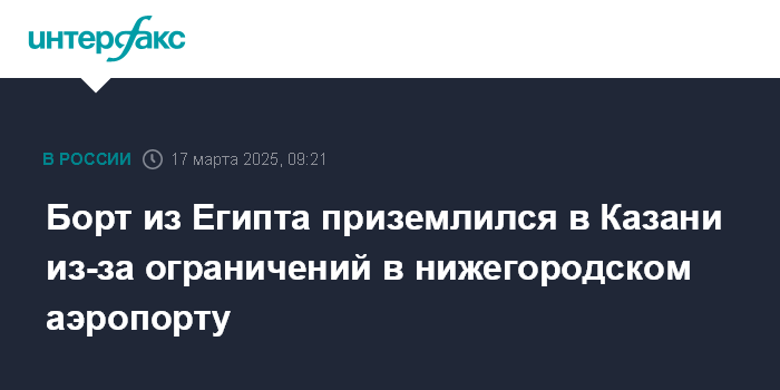 Борт из Египта приземлился в Казани из-за ограничений в нижегородском аэропорту