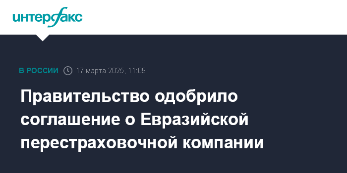 Правительство одобрило cоглашение о Евразийской перестраховочной компании