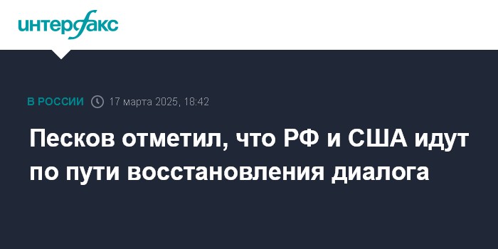 Москва. 17 марта. INTERFAX.RU - Россия и США идут по пути реанимации двусторонних отношений, сообщил пресс-секретарь президента РФ Дмитрий Песков.