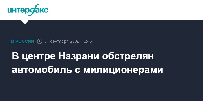 Москва. 21 сентября. INTERFAX.RU - В Назрани (Ингушетия) в понедельник обстреляна автомашина УАЗ, в которой находились сотрудники ГОВД города. Как сообщили агентству "Интерфакс-Юг" в МВД Ингушетии, инцидент произошел в 16:20 мск в центре города у здания республиканской клинической больницы. "Неизвестными лицами из автоматического оружия была обстреляна автомашина УАЗ, в которой находились сотрудники ГОВД. Информации о погибших и пострадавших пока нет", - сказал представитель МВД. По его словам, на месте происшествия работает следственная группа, предпринимаются меры по поиску и задержанию нападавших.