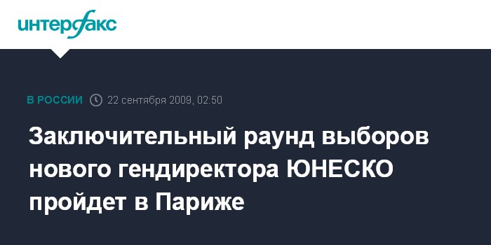 Париж. 22 сентября. ИНТЕРФАКС - На вечер вторника в Париже намечен пятый, последний раунд голосования по выборам нового генерального секретаря ЮНЕСКО, победителем которого станет кандидат, набравший наибольшее число голосов.